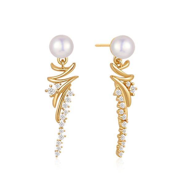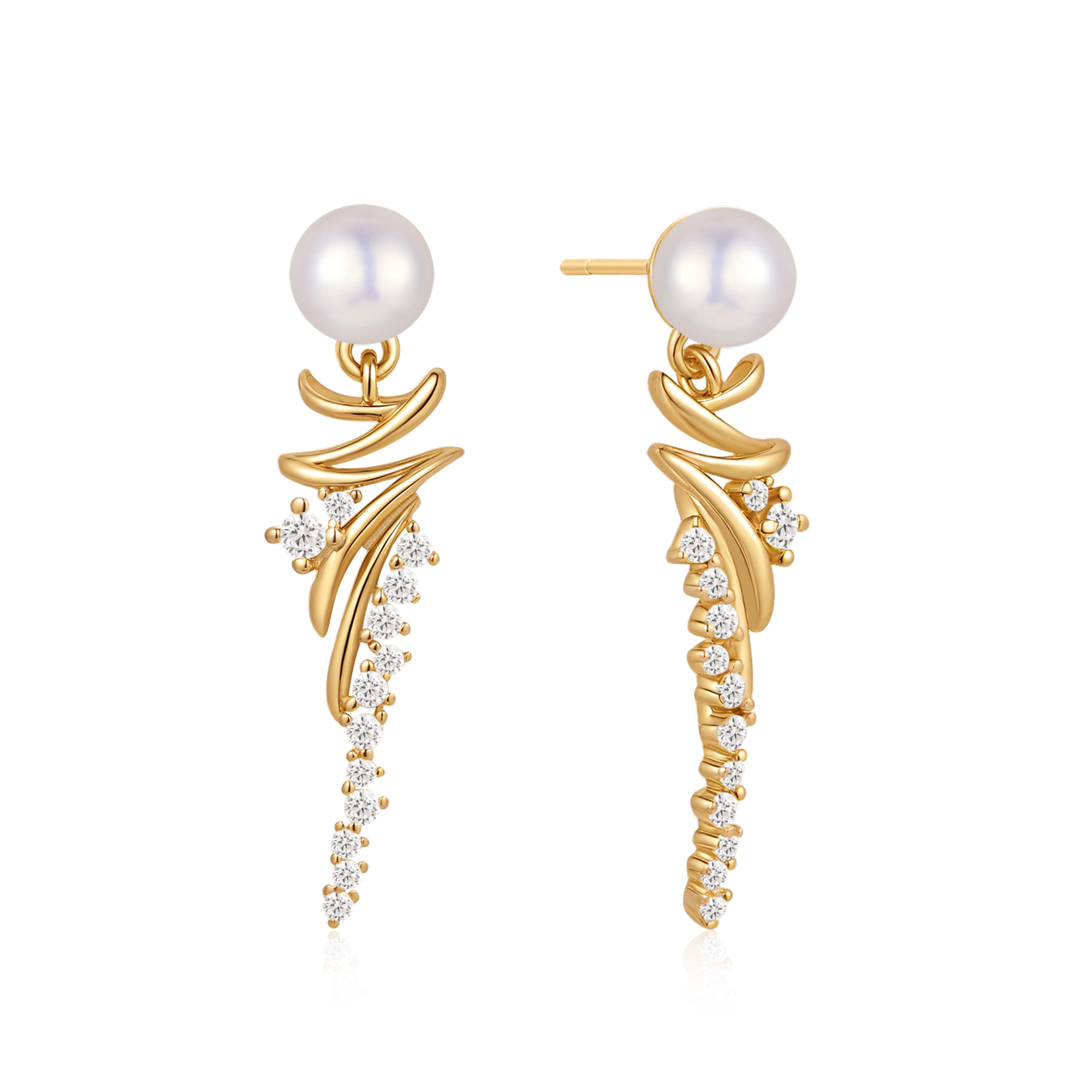 Sølvforgyldt ørehænger ferskvandsperle med aflang zigzag og syntetiske cubic zirconia.