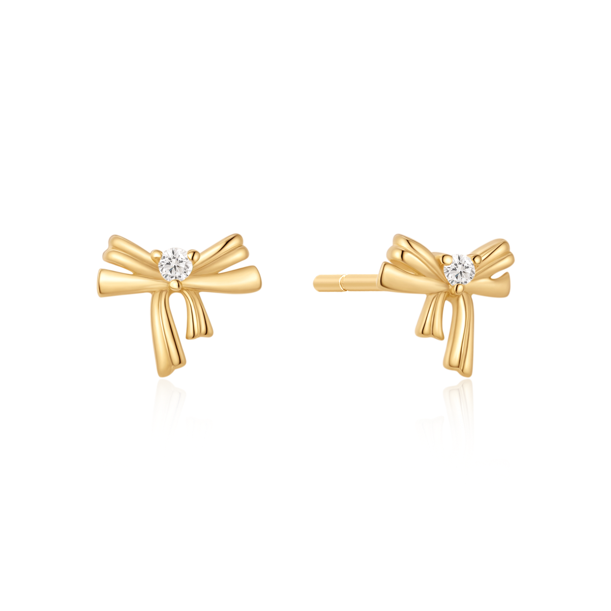Sølvforgyldt ørestikker sløjfe med syntetisk cubic zirconia.