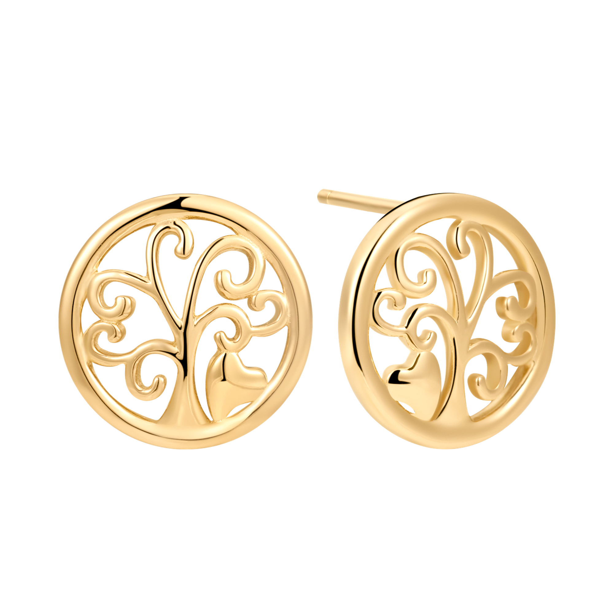 Sølvforgyldt ørestikker cirkel med livets træ og hjerte.