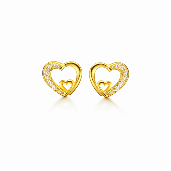 Sølvforgyldt ørestikker Mor/barn hjerte med syntetiske cubic zirconia.