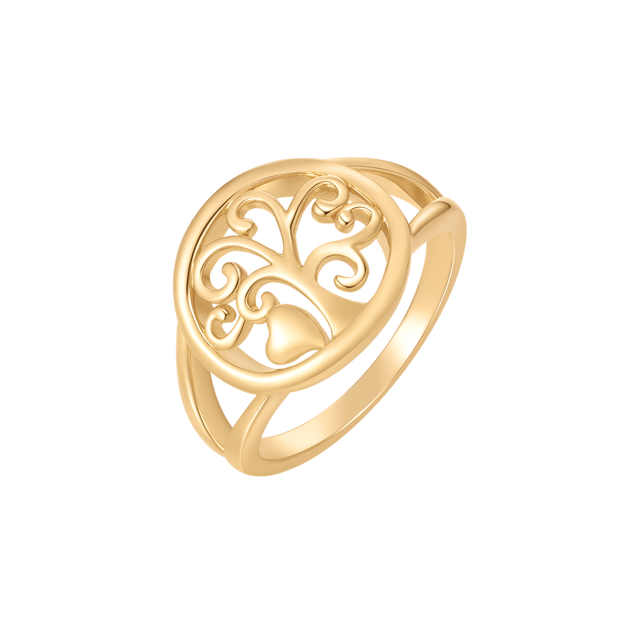 Sølvforgyldt ring cirkel med livets træ og hjerte. Mål: 15 mm. i diameter.