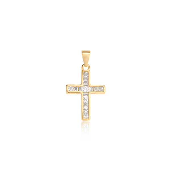 Sølvforgyldt vedhæng kors med syntetiske cubic zirconia.