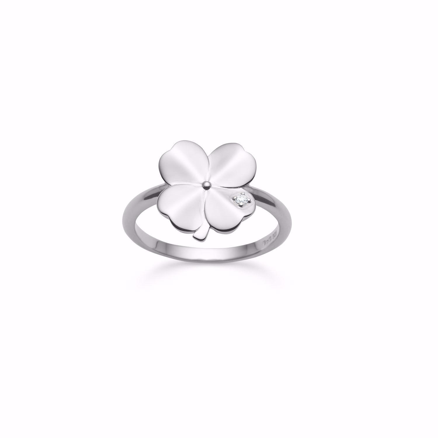 Sølvring firkløver med zirkonia