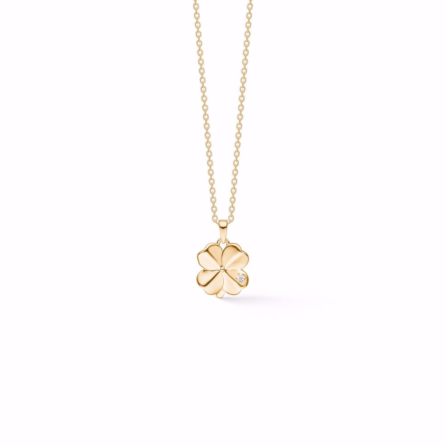 Sølvvedhæng forgyldt firkløver med cz og kæde