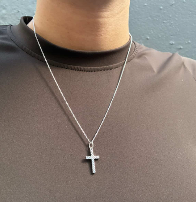 Det snoede mønster giver et raffineret spil i lyset og tilføjer et håndværksmæssigt præg, der løfter hele udtrykket. Det er et smykke, som både børn, unge og voksne kan bære med stolthed – og en fin gaveidé til konfirmation, barnedåb eller som et symbol på personlig tro.