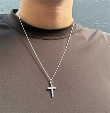Dette smukke korsvedhæng i ægte sterlingsølv (925) kombinerer traditionelt design med et moderne twist. Med sine mål på 19 x 12 mm er det ideelt som et diskret, men iøjnefaldende smykke, der kan bæres til både hverdag og særlige lejligheder. De skrå linjer i overfladen skaber en dynamisk tekstur, der tilfører korset dybde og visuel interesse – perfekt til dig, der ønsker noget ud over det sædvanlige.