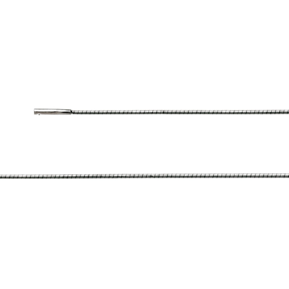 Omega ring "Tonda" lavet af poleret 925/- sterling sølv med bajonetlås (stiklås) med en tykkelse på 1,2 mm. Perfekt til sarte vedhæng, der bæres tæt på halsen. Fås i længderne 40 cm, 42 cm og 45 cm. Vil du bestille kæden til at matche et rhodineret vedhæng i rhodineret? Vi tilbyder disse kæder i rhodineret med en længde på 45 cm. Klik på "rhodineret" mulighed. Hvert vedhæng kommer med en matchende kæde, der perfekt understreger vedhængets karisma uden at trække opmærksomheden på sig selv. Et subtilt vedhæng kræver en subtil, delikat kæde. Karismaen ved et overdådigt vedhæng kan understreges af en karakteristisk kæde lavet af læder eller bomuld. En række kombinationsmuligheder garanterer, at den perfekte halskæde kan vælges til hvert vedhæng. Alle bastian inverun smykker sendes med et matchende smykkeskrin. Dimensioner: Tykkelse: 1,2 mm / 0,047 tomme