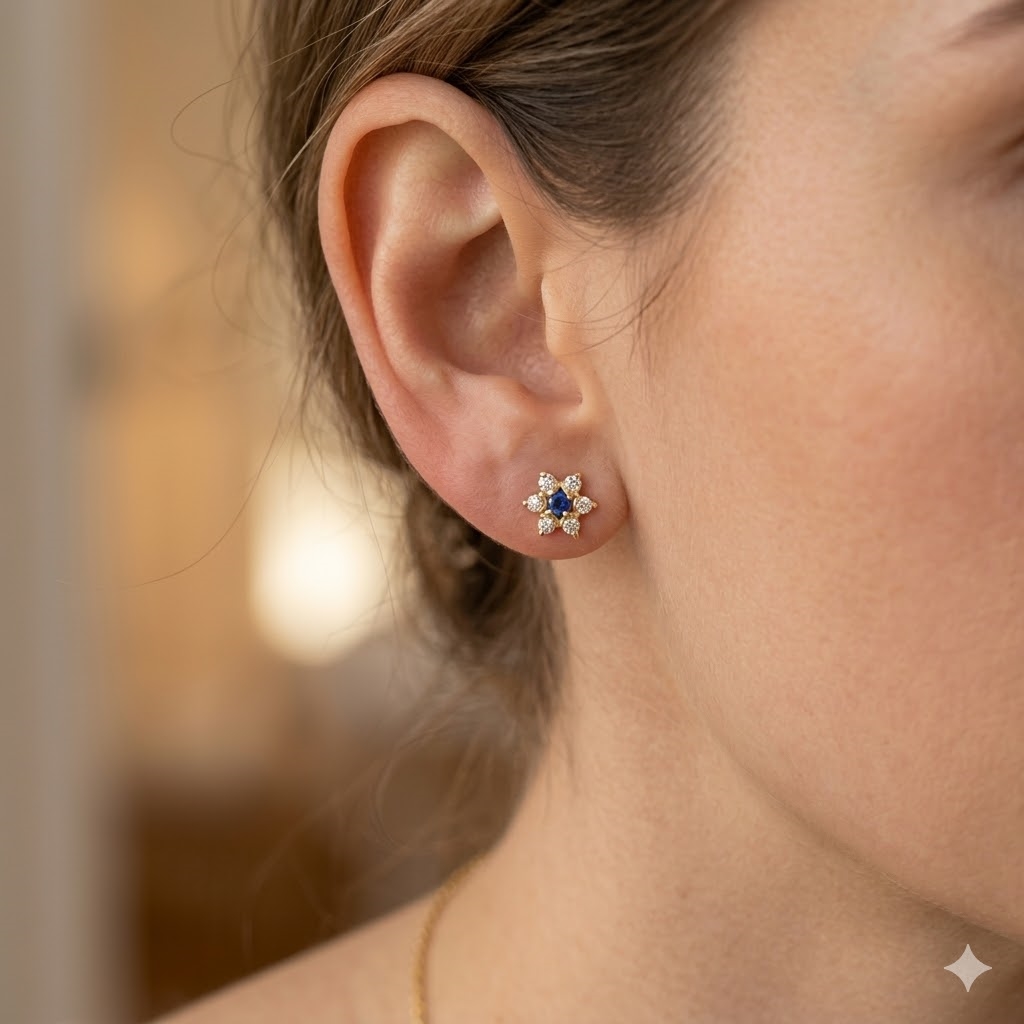 8 Karat Guld Ørestikker med Safir og Zirkonia