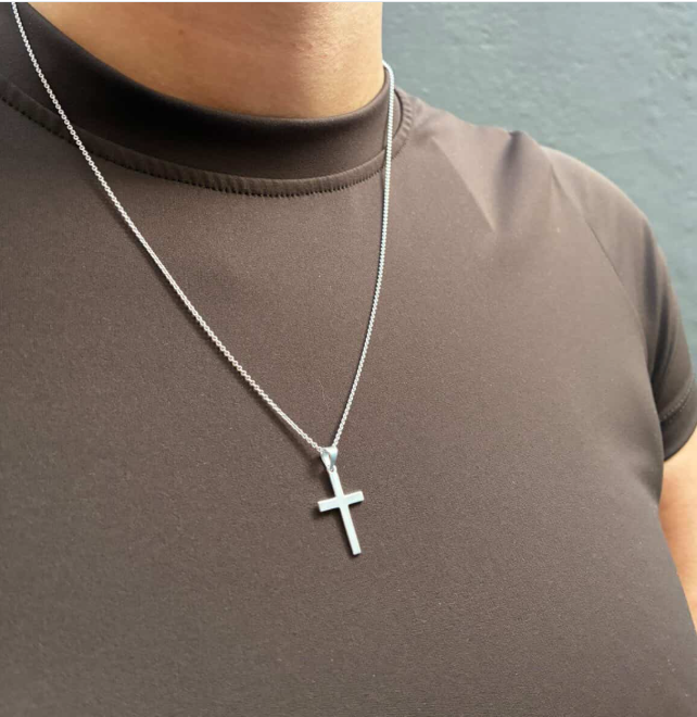 Korset fås i 925 sterling sølv, 8 karat eller 14 karat guld. Korset har en flot blank overflade, som nemt kan vedligeholdes med en pudseklud.