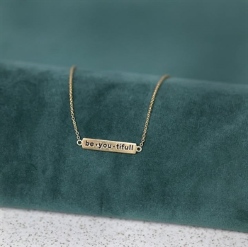 Story by Kranz & Ziegler forgyldt sølv vedhæng med teksten "Be you tifull" og 45 cm kæde