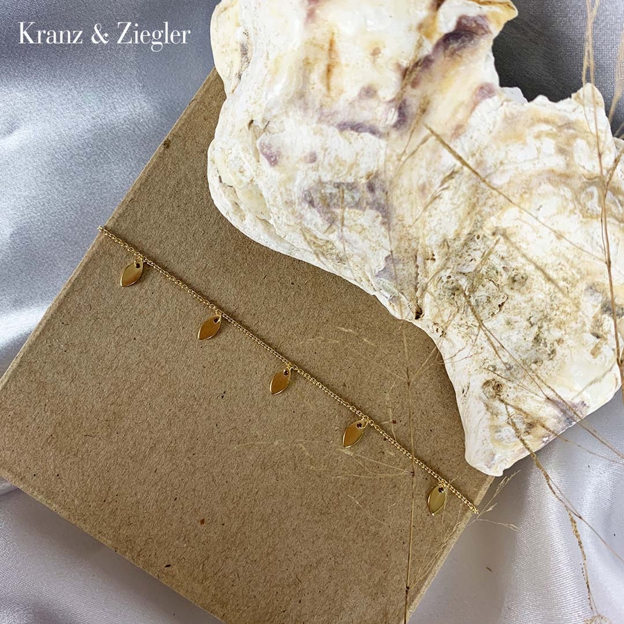 Fint armbånd med "Dancing Leafs". Bladene er 7 mm og armbåndet kan lukkes i forskellige længder, 16 + 4 cm