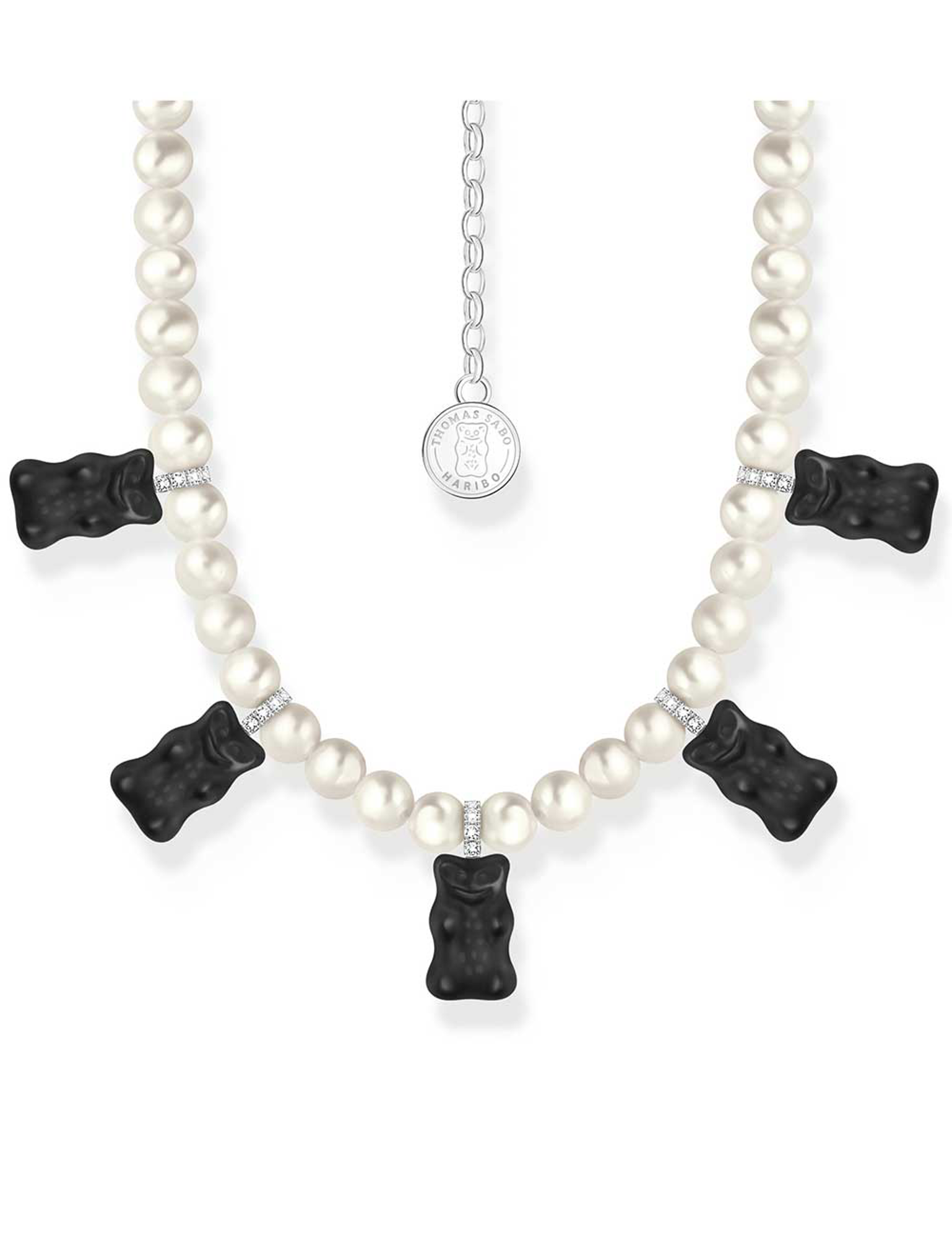 Thomas Sabo KE2208-052-11-L50V Silver Pearl necklace With 5 Black Gold Bears Ladies Chain