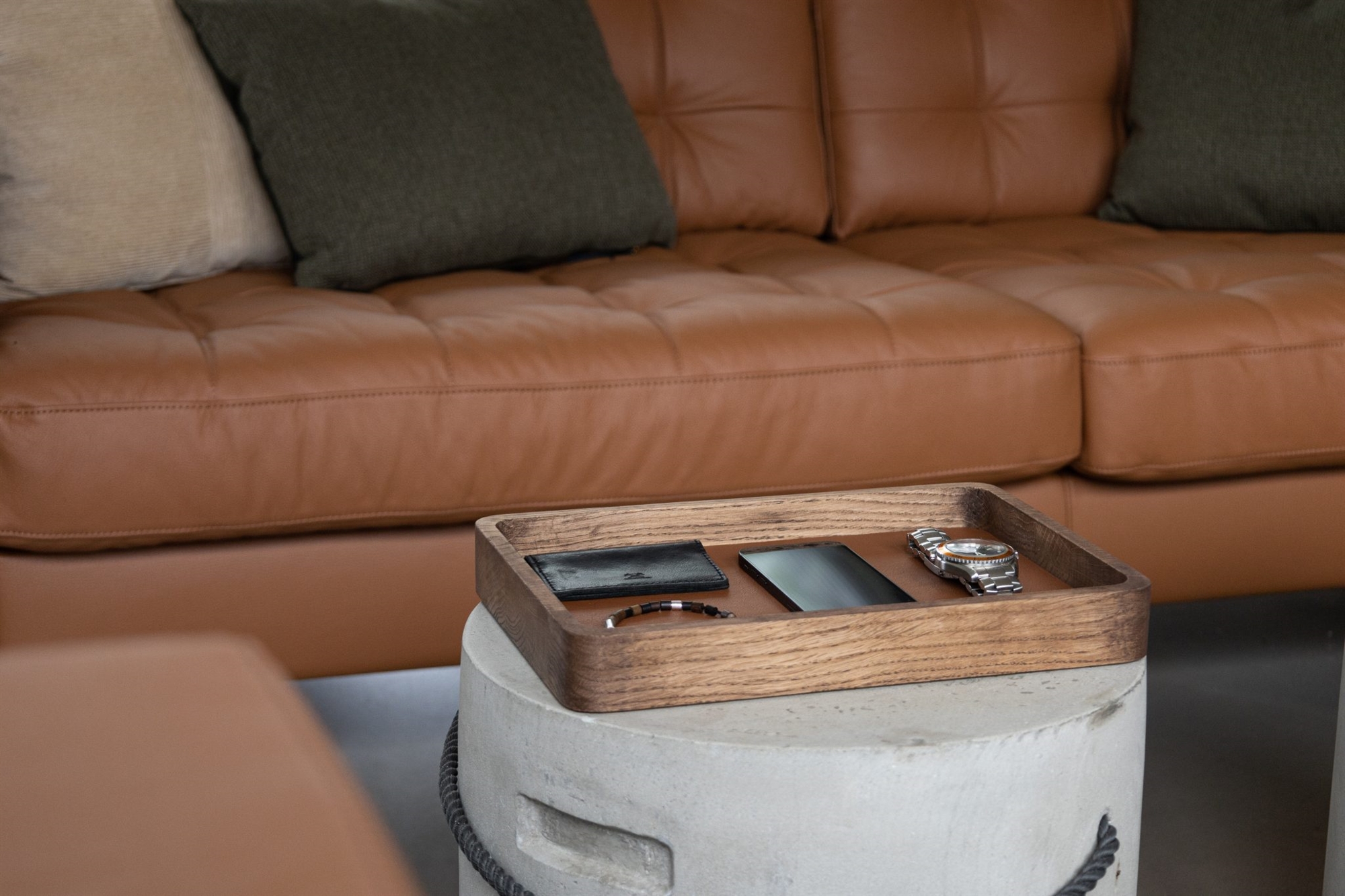 Valet i natur egetræ - placer dine ure og smykker med stil - flere farver læder