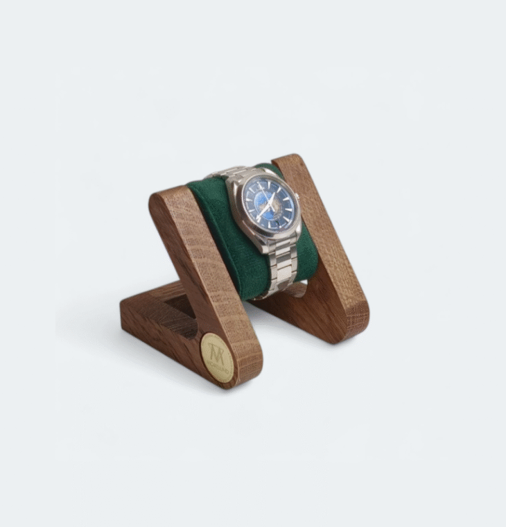 Watch stand i mørk egetræ - læg dit ur med stil! - to farver puder