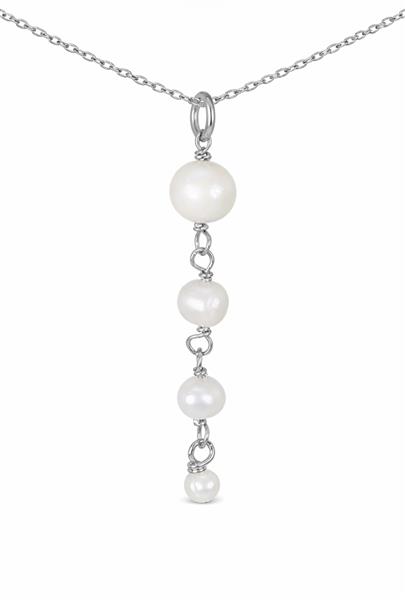 Y-Kæde sølv rhodineret med ferskvandsperler, fra L&G