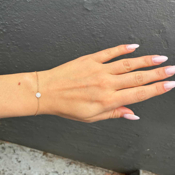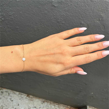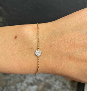 Fint armbånd i rund anker med plade i midten belagt med zirkonia. Armbåndet er lavet i 8 kt guld